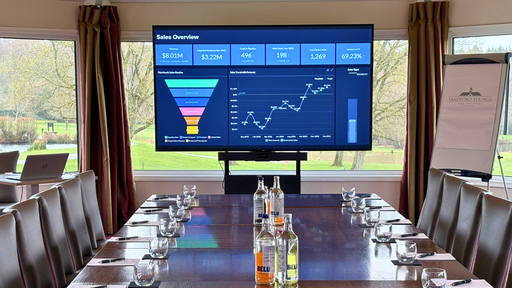 The Kingsclere Suite now features a stunning 98” Philips Commercial Display and a Yealink A50 Video Bar, the space is fully equipped for high-quality hybrid meetings. With multiple cameras and microphones, it can clearly capture and engage different speakers across the room at the same time — making collaboration effortless, wherever your attendees are joining from.